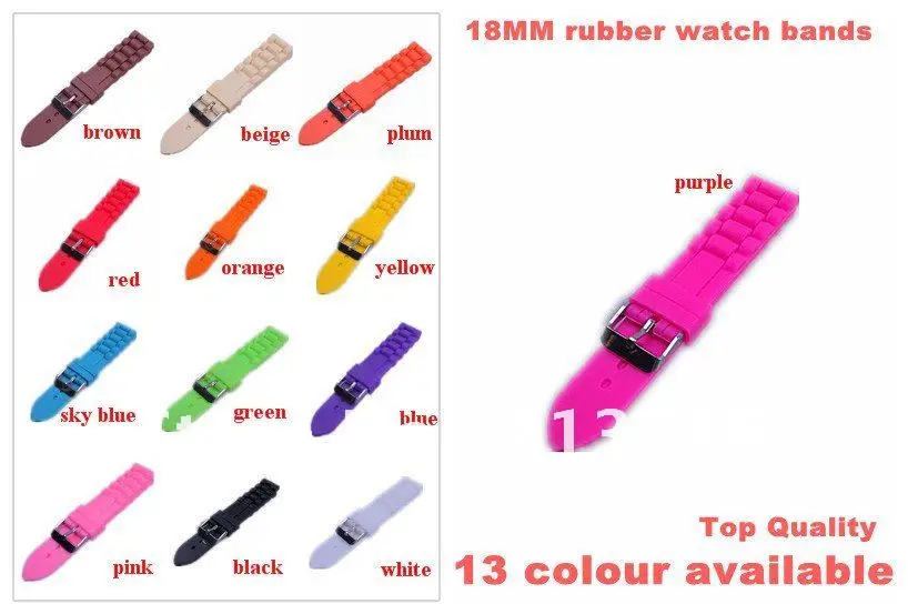 оптовые Много 50 шт. 18 мм Резины Ремешок Для Часов 10 цвета --- Высокое Качество