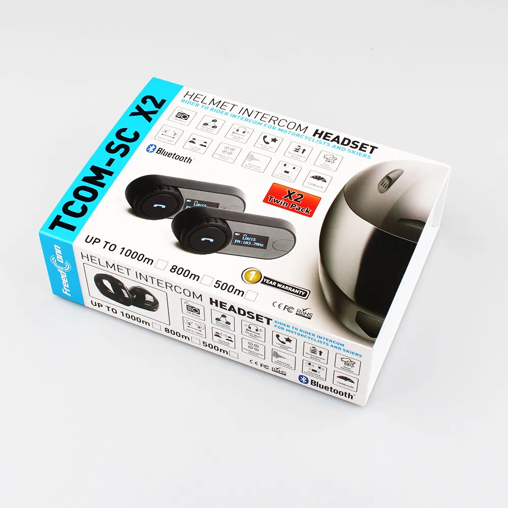 2 шт. 2016 Версия TCOM-SC BT Bluetooth Мотоциклетный Шлем Интерком Домофонных Гарнитура ЖК-экран Fm-радио + Мягкие Наушники