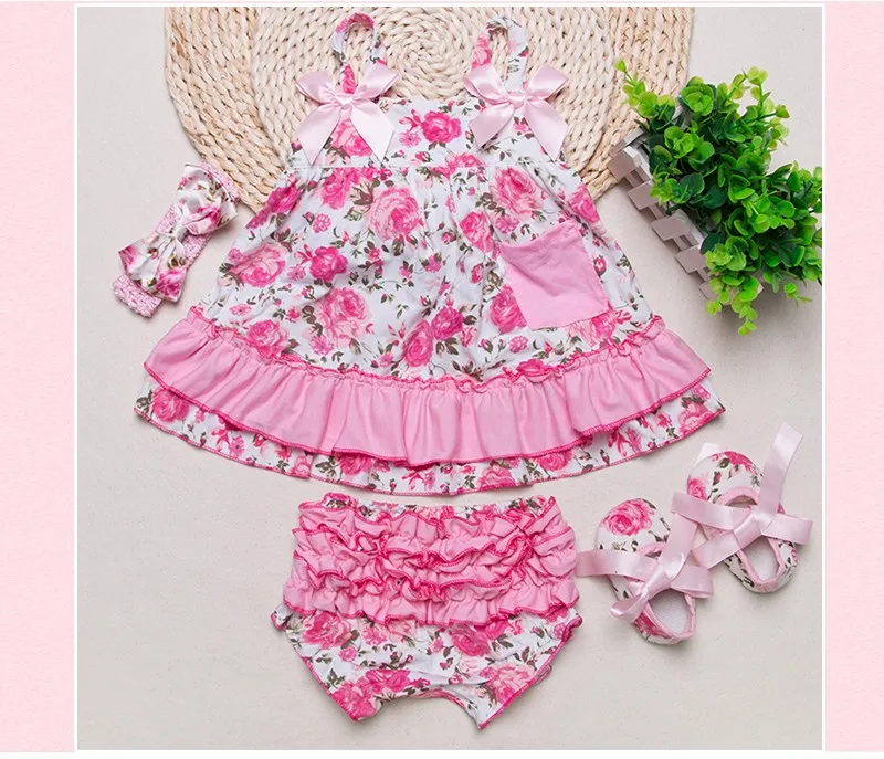 2016 Baby Girl Clothes 4pcs Clothing Sets Black Cotton Rompers Golden Ruffle Bloomers Shorts Shoes Headband Newborn ClothesUSD 17.50-17.88/set