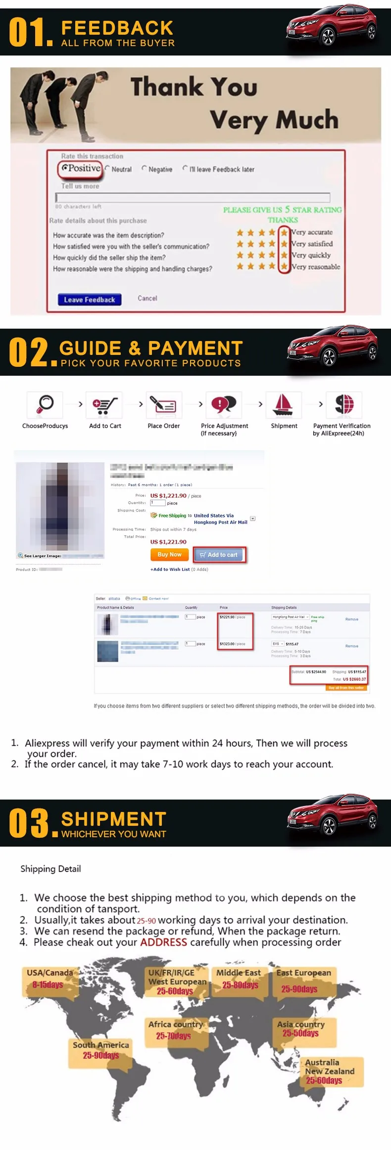 примечание: обычно мы посылаем вне товары воздушной Почтой Столба Кита/Парцеллой или другого продавца доставка метод просто принадлежит всему миру сообщению системы, которая является гораздо медленнее, чем Срочная доставка. детали будут приезжать в 10-60 рабочих дней к всемирно обычно. и время прибытия зависит от ряда факторов и различных областях. время доставки в течение Курортного Сезона (Рождество, Китайский Новый Год и т. д.) может быть дольше, чем в обычное время. пожалуйста, добавьте еще 5-10 дней как задержка.