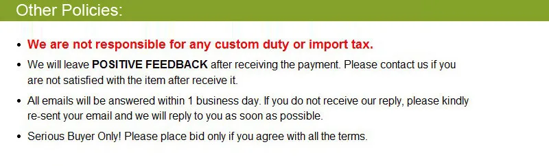 1. Пожалуйста, обратите внимание, что детали будут отправлены только только после полной оплаты сделки.