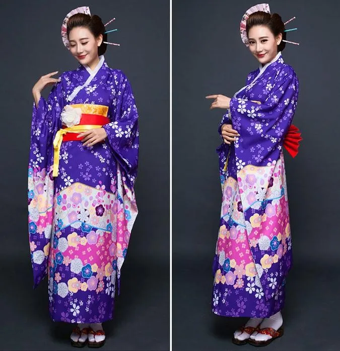 Высокое качество Японский женщин кимоно платье традиционные юката с оби