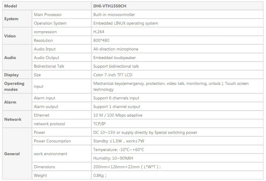Original Dahua 7-inch 800X480 Resolution English Touch Screen Color Indoor Monitor VTH1550CH Export version without logoUSD 149.79/piece