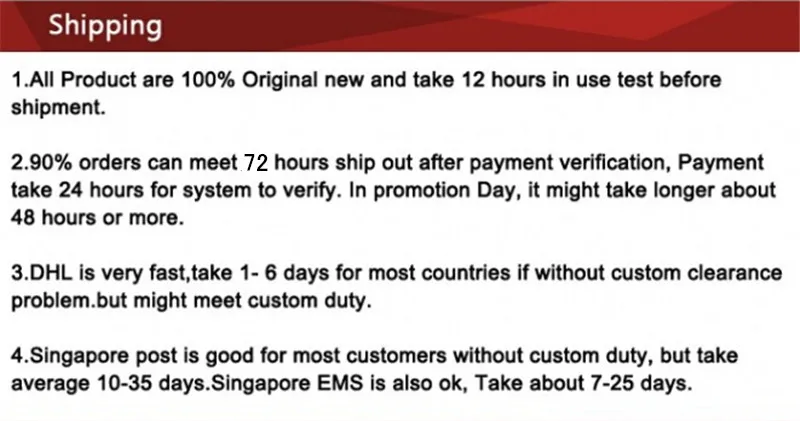 2. Мы отправим товар в течение 6 рабочих дней после полной оплаты был подтвержден.