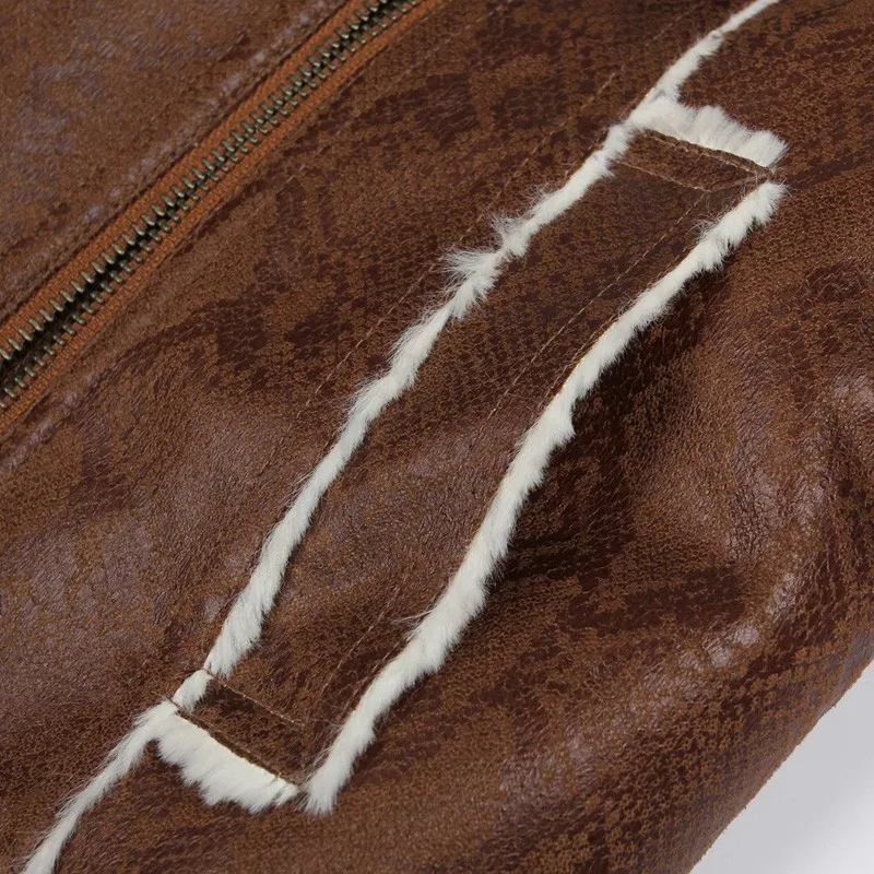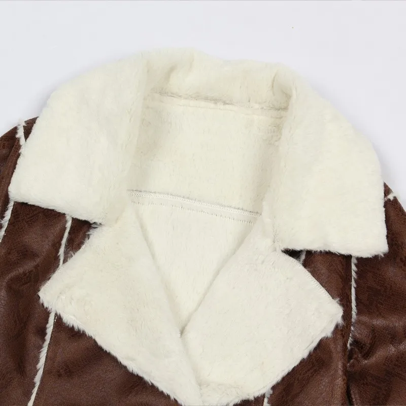 Veri Gude Women\'s Double Breasted Winter Coat Flat Faux Fur Collar Faux Leather JacketUSD 76.79/piece